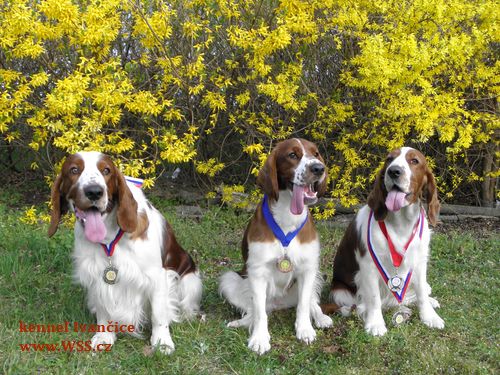 Ze všech "Jéček" vyrostli za ty dva roky opravdoví welššpringři, kteří dělají radost svým páníčkům i nám. Jediný pejsek ve vrhu "J" Jeremy Jeff Ivančice je chovným psem a v letošním roce velmi úspěšně reprezentoval naši chovatelskou stanici na zkouškách a výstavách v ČR i zahraničí. Fenka Jane Elanor Ivančice je také chovnou fenou a podmínky chovnosti již také splnila fenka Judith Jolanda Ivančice. V Německu žijící Joy Adams Ivančice je úspěšná na místních výstavách a s výtečnými výsledky absolvovala všechna povinná zdravotní vyšetření včetně HD/DKK, toto s výsledkem A/C. |